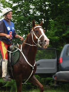 ![]() Farhoz de paute et Céline Scwartz repartent en 3ème postion du dernier Vet Gate, derrière Piacenza et Geruan parti en 2ème position. Geruan rattrape Piacenza , la dépasse, et entre seul sur l'hippodrome de Monpazier. |