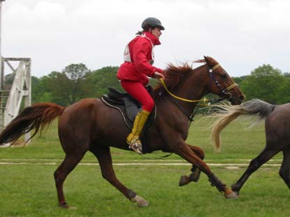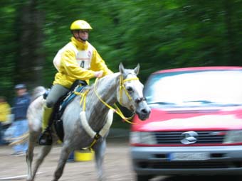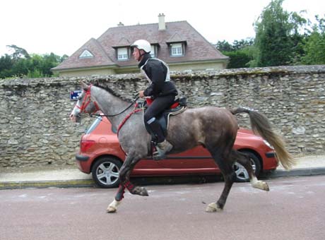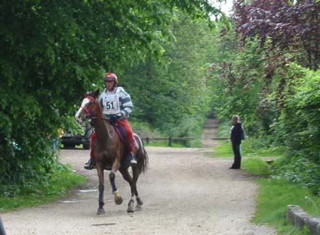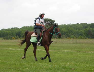 ![]() Eldair de Cabirat et Jean Noel Lafaure, partis 7 minutes devant leurs plus proches poursuivants, voient leur avance se réduire au fur et à mesure de l'étape. Seuls, ils parviennent néanmoins à ne pas se faire rattraper avant l'hippodrome , alors que 12kms plus tôt leur avance n'était plus que d'1mn 30. |