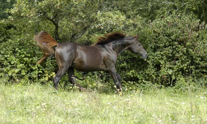 En croisement, il allègera le modèle, améliorera les allures en transmettant son équilibre, son excellent galop endurance.