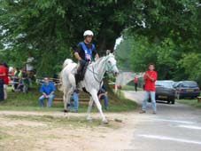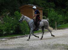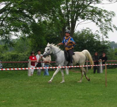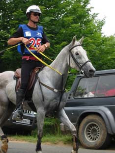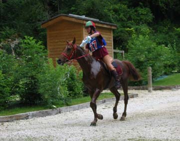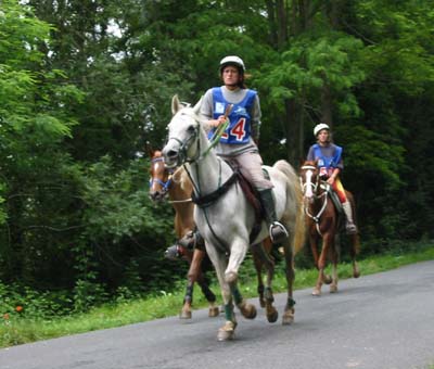 ![]() Farhoz de paute et Céline Scwartz repartent en 3ème postion du dernier Vet Gate, derrière Piacenza et Geruan parti en 2ème position. Geruan rattrape Piacenza , la dépasse, et entre seul sur l'hippodrome de Monpazier. |