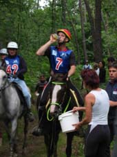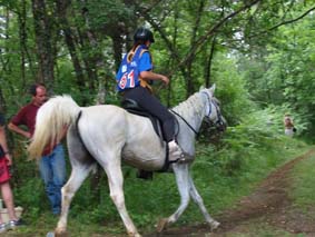 ![]() Geruan de lux et Anita David Becker arrivent les premiers au dernier Vet gate. Ils entrent les premiers dans l'aire de contrôle, mais malheureusement il s'avère être remonté au dessus de 64. C'est Piacenza qui une fois encore entre rapidement au vet gate et reprend ainsi l'avantage. |