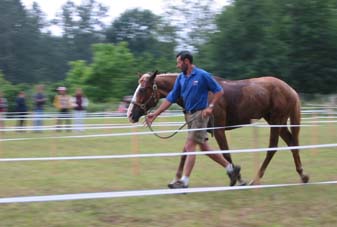 .Coup de théatre à ceVet gate : Jawhar entre le premier, mais Vincent Dupont se voit obligé de le représenter pour cardiaque supérieur à 64, entre temps Jean Noêl entre avec Gerzew qui lui aussi s'avère trop haut ! Et ces deux chevaux qui menaient en tête, se voient lors de leur seconde présentation, éliminés tous les deux pour boiterie ! Piacenza repart en tête du Vet Gate, grace à une très rapide récupération. |