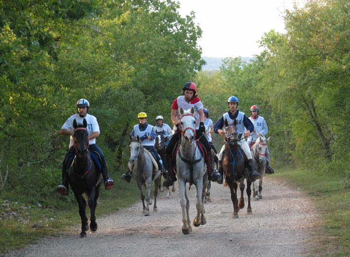 ![]() Sur cette étape, les cavaliers sont encore très nombreux à pouvoir briguer les premières places. |