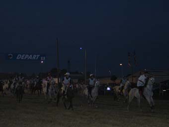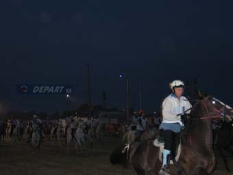 ![]() Le départ à 7h 30 , 110 chevaux s'élancent pour une première étape de 42km |