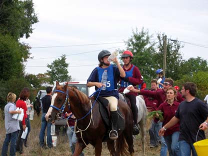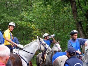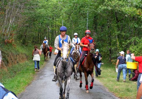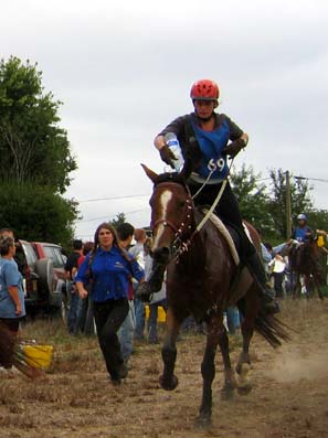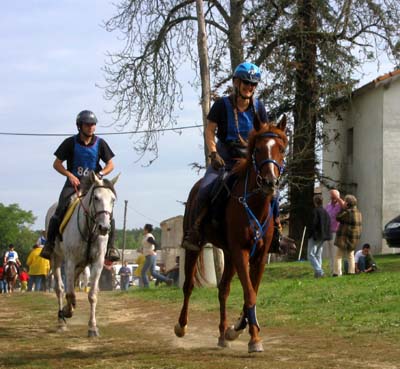 L'arrivée de la première étape a été le théatre d'une belle empoignade entre les suiveurs et la table d'arrivée, pendant que de très nombreux chevaux se voyaient interdire pendant plusieurs minutes l'entrée du Vet Gate. Le précieux ticket d'arrivée ayant du mal à être récupéré ! 1 seule table d'arrivée pour gèrer des paquets de 20 à 30 chevaux c'est de l'inconscience !!! Alors forcément , ca a chauffé à l'entrée du Vetgate.... Heureusement ça s'est amélioré pour la suite. Le balisage quant à lui était assez particulier; les balises si elles étaient nombreuses, claires et colorées, elles étaient malheureusement souvent un peu mal positionnées par rapport aux carrefours et prêtaient assez souvent à hésitation. Une chose encore, ce serait bien que les organisateurs n'oublient pas les valeurs originelles de l'endurance même si elles ne sont plus si souvent revendiquées; un des derniers cavaliers à repartir sur la dernière étape s'est entendu dire par une personne de l'organisation alors qu'il s'apprêtait a prendre le départ " Vous êtes sûr de vouloir y aller parce que vous savez ,ce qui est interessant c'est les premiers, après les autres...". Pour le principe également, quand on a le plaisir de pouvoir arriver main dans la main sur la ligne d'arrivée ce n'est pas pour se voir départager par un bénévole zélé et mal informé . Même si ça ne change pas grand chose, c'est plutot désagréable, les 5 premiers ne peuvent pas le faire mais en général les suivants sont libres..... Le site d'accueil du départ est toujours très pratique et très vaste avec son grand parking pour les véhicules et les paddocks des chevaux. Les sanitaires et les douches sur place ajoutent au confort des irréductibles campeurs ! A noter également Sunny
