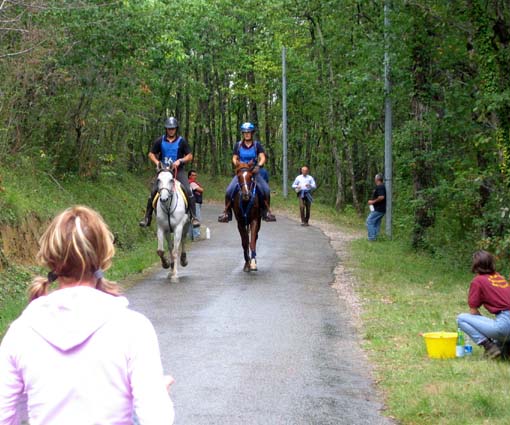 ![]() Départ pour la 3ème boucle pour Halika et Sandrine Blot, suivies de Jade et Jean René Laousse |