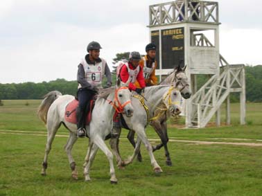La chasse s'est organisée dans le sillage du premier, 10 chevaux remontent progressivement sur lui , sans parvenir à le raccrocher.Après le dernier point de ravitaillement Marouska lève le pied . 5kms avant l'arrivée, c'est Kanda'haar qui demande à souffler, Nicolas décide de ralentir le galop , et voit le groupe s'éloigner . Et c'est l'arrivée .On aperçoit à l'entrée de l'hippodrome Jean Noêl et Eldair qui s'élancent pour un dernier tour de piste, les boxes sur leur gauche semblent les "aspirer " pendant quelques foulées. Ils progressent reprenant le galop , et soudain apparaissent, fondant sur lui , les 7 poursuivants qui progressivement le rejoignent , pour un sprint final d'anthologie , où Al'koum l'emporte en coiffant de quelques foulées Eldair, Dakota filant plein gaz pour une belle troisième place.A quelques foulées derrière Douar franchit la ligne juste devant Varoussa et Menkhib, 10 secondes plus tard Djellab prend la 7ème place ! |