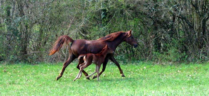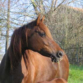 SOUANA D'AROCO** Femelle Arabe 1991 Alezan Brulé 1,54m née chez Jacqueline et Jean Claude Dacquay (24) |